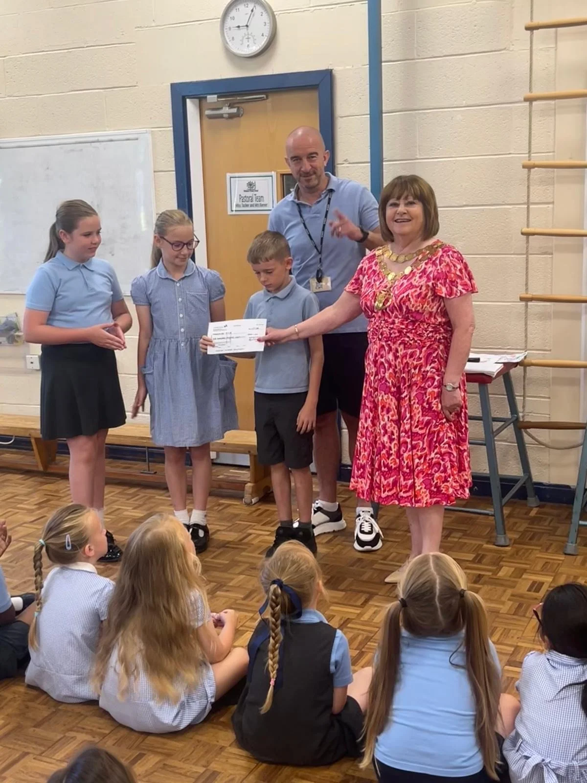 I was there also to present a grant cheque of £500, on behalf of Westhoughton Town Council, to the PTA of the school. This was to fund a trip by the current Year 5 to Imperial War Museum North, as part of the history curriculum.